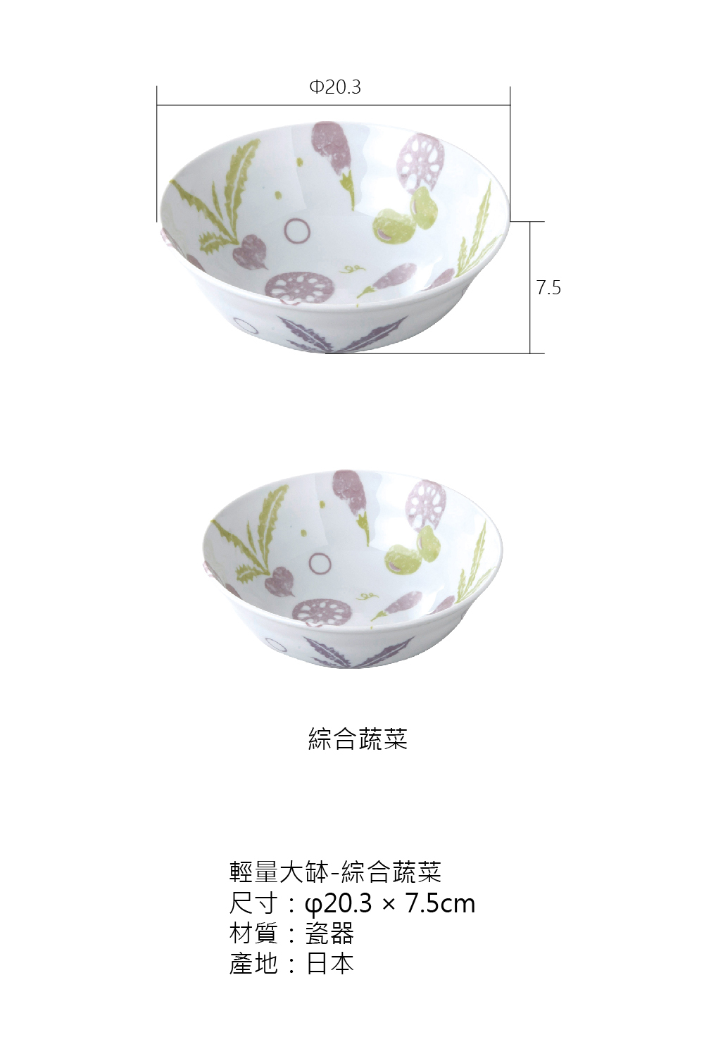 小倉陶器輕量大缽-綜合蔬菜