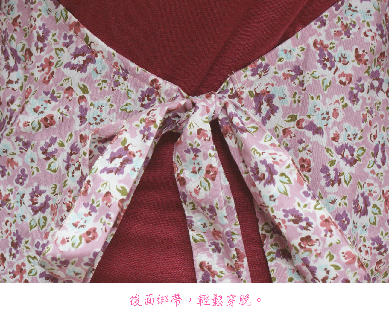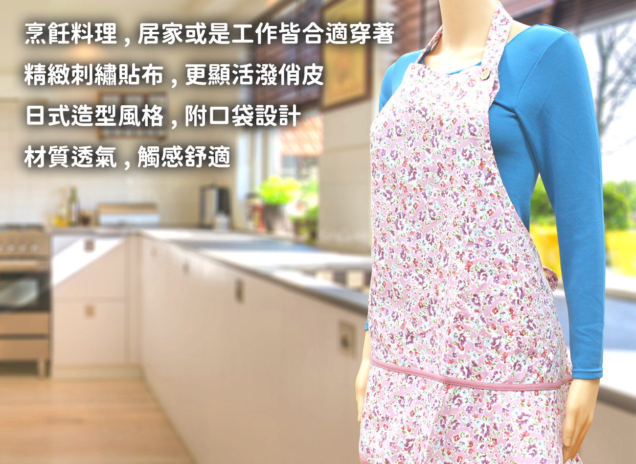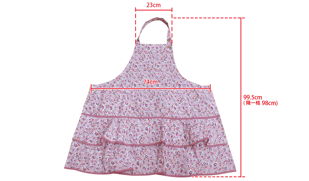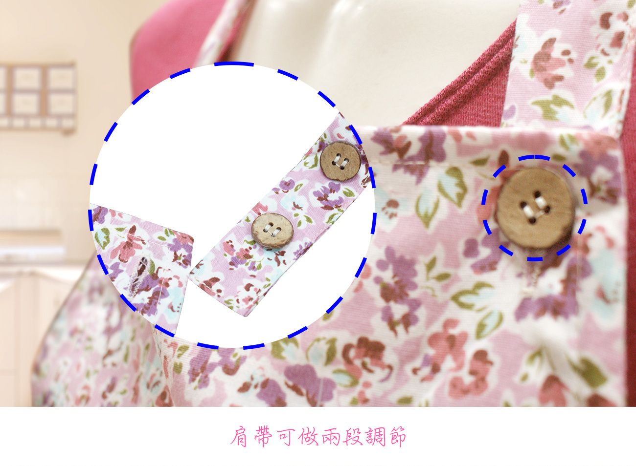 日式蛋糕裙風肩帶兩段調節側雙口袋圍裙-圓點小貓