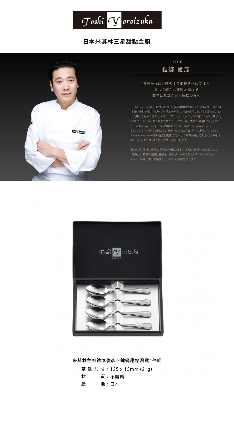 米其林主廚鎧塚俊彥不鏽鋼甜點湯匙4件組