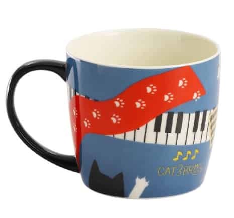 可愛迷人的貓和鋼琴圖案馬克杯