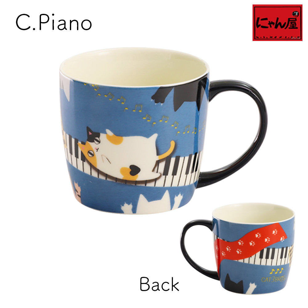 藍系列貓3兄弟馬克杯-鋼琴