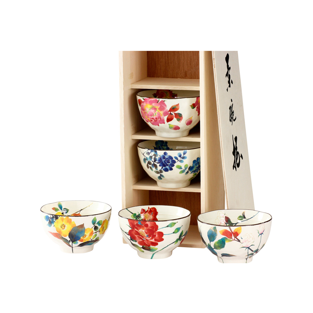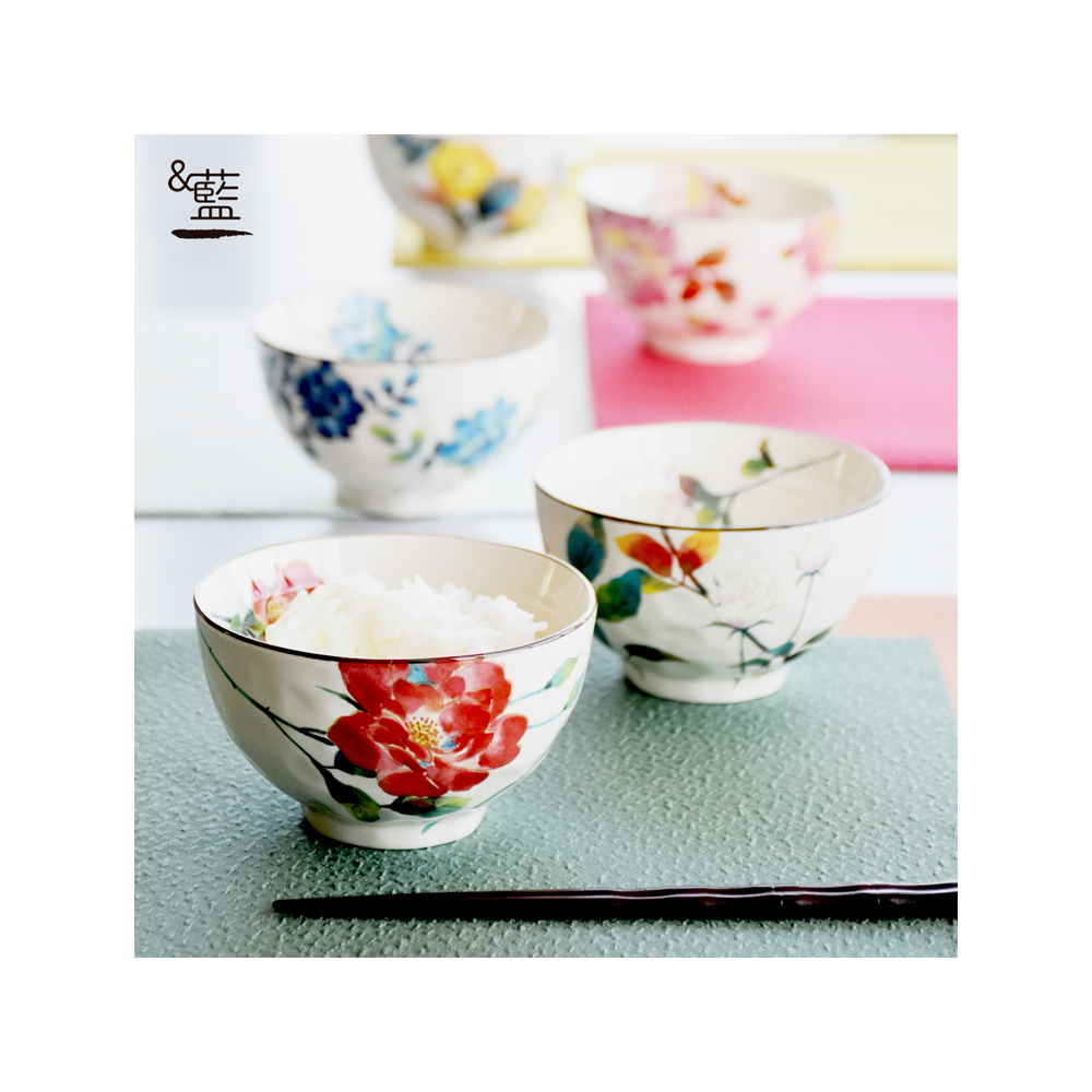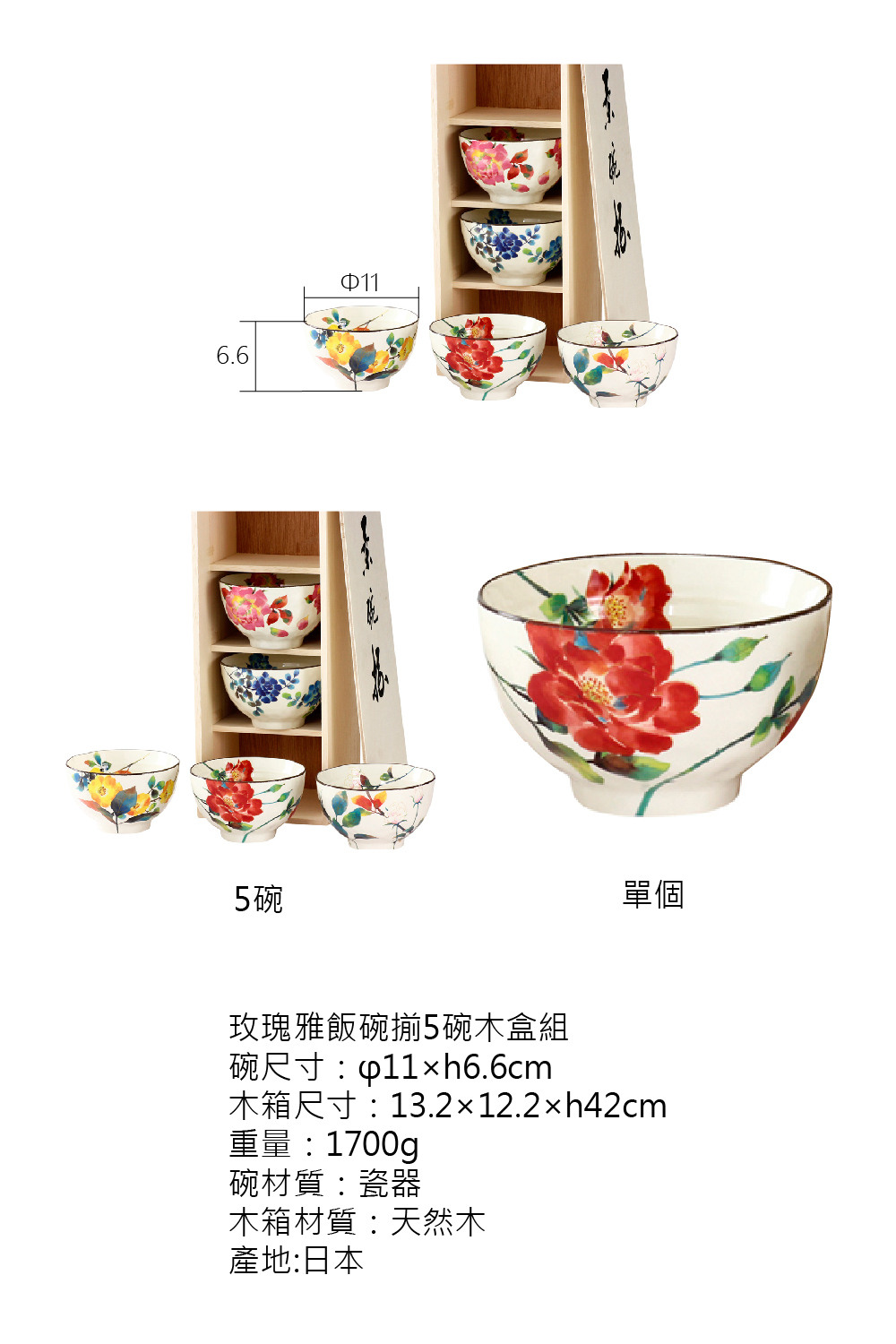 陶瓷藍玫瑰雅飯碗揃5碗木盒組