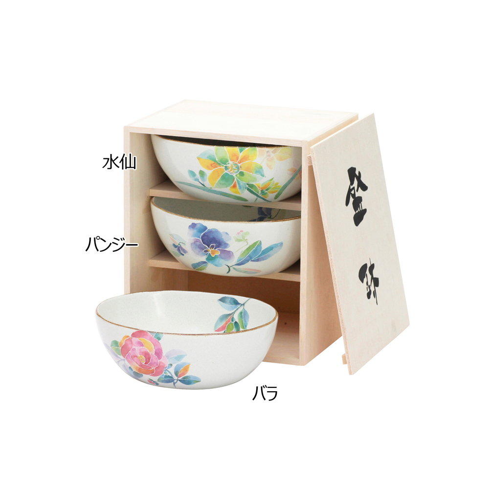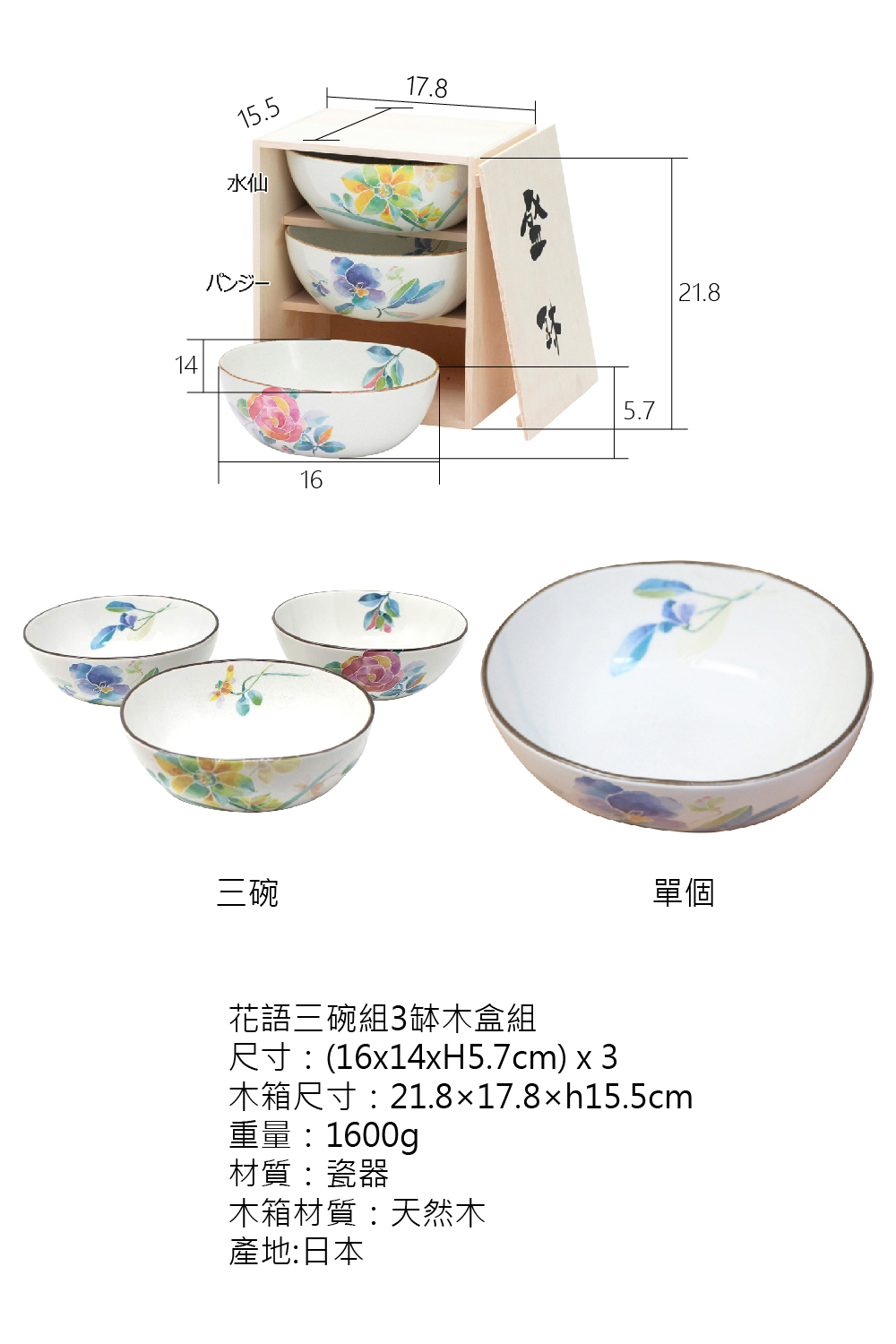 陶瓷藍花語三碗組3缽木盒組