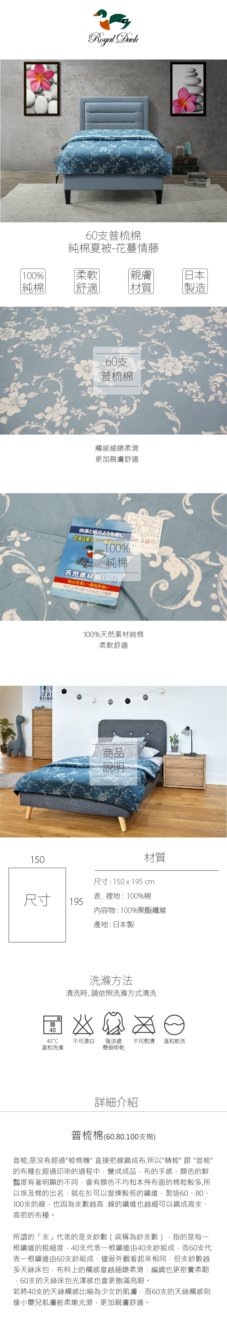 Royal Duck 60支純棉涼感夏被 花蔓情藤