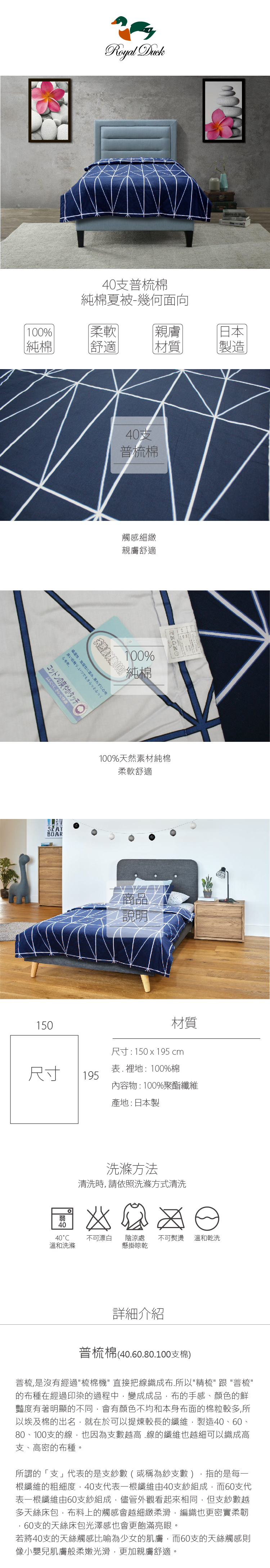 Royal Duck 40支純棉涼感夏被 幾何面向