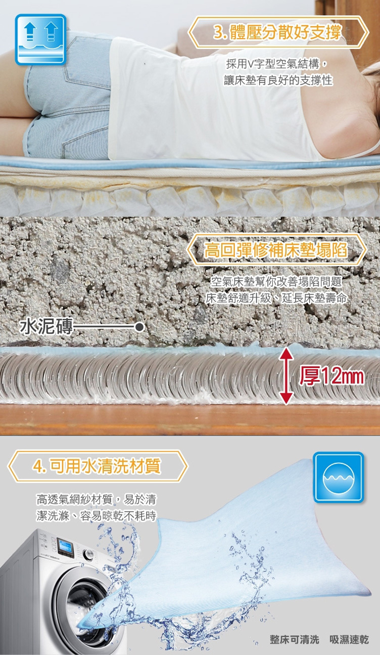 3.回彈力佳 : 修補床墊塌陷問題,舒適升級