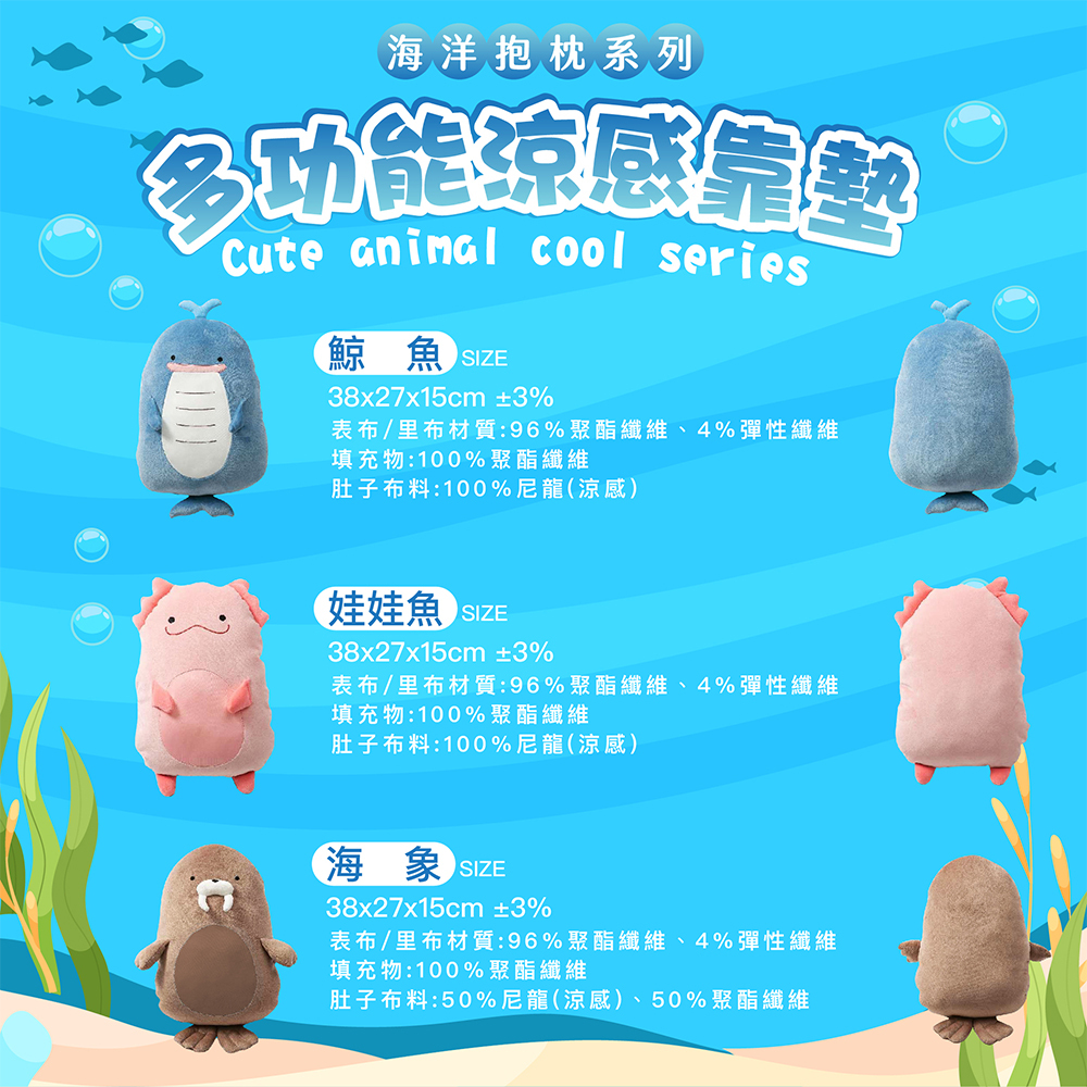 多功能涼感抱枕 可愛海洋抱枕 鯨魚 娃娃魚 海象