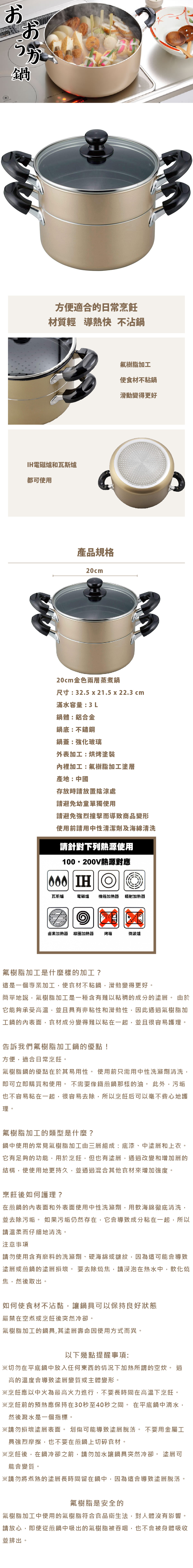 20cm金色雙層蒸煮鍋
