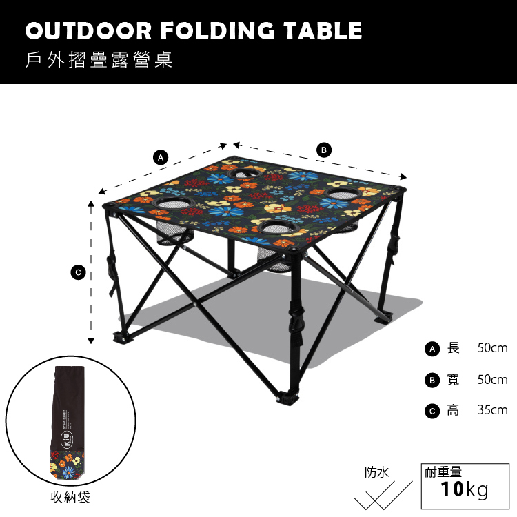 KIU 迷幻花園 防水戶外摺疊露營桌