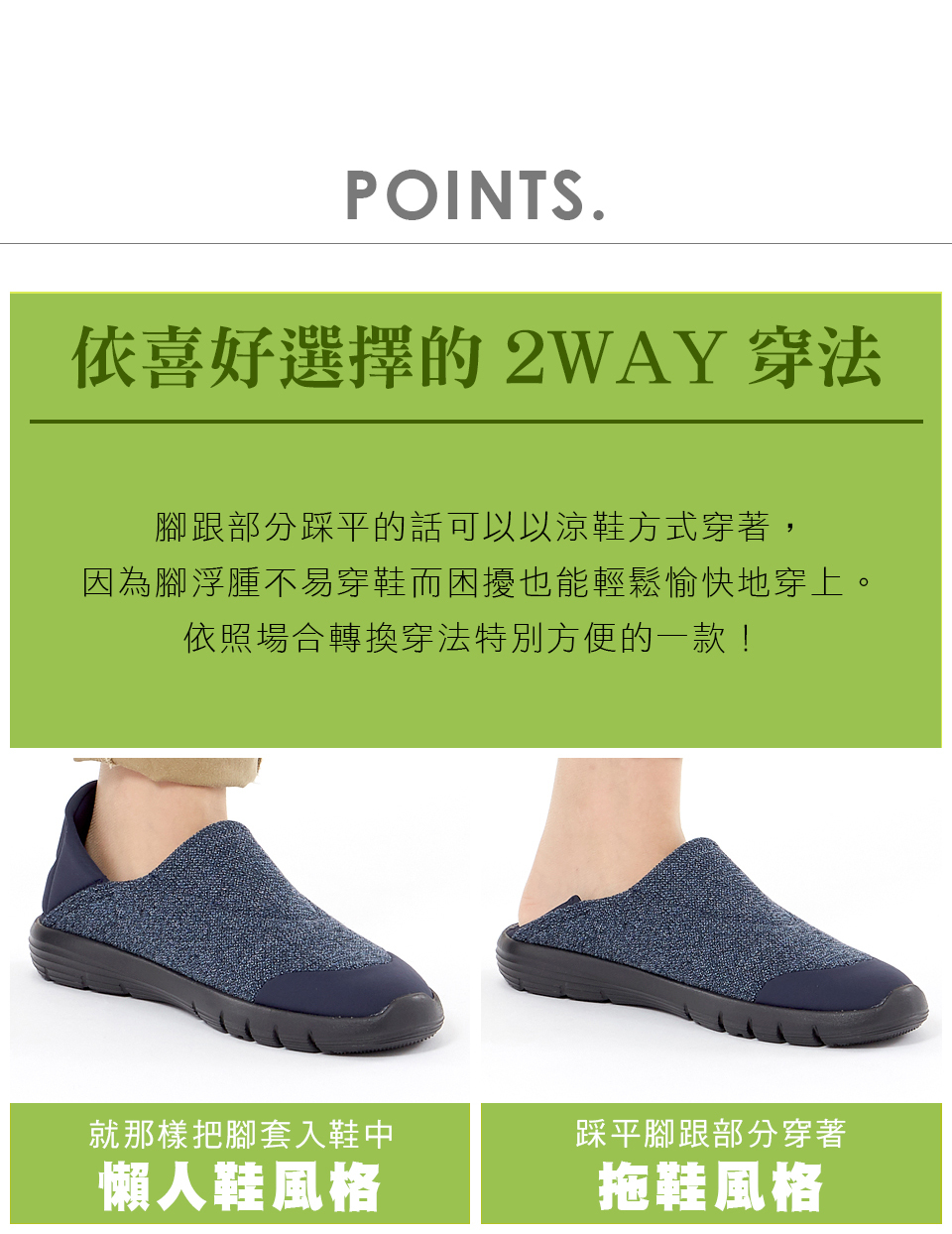 腳跟部分踩平的話就變涼鞋方式穿著