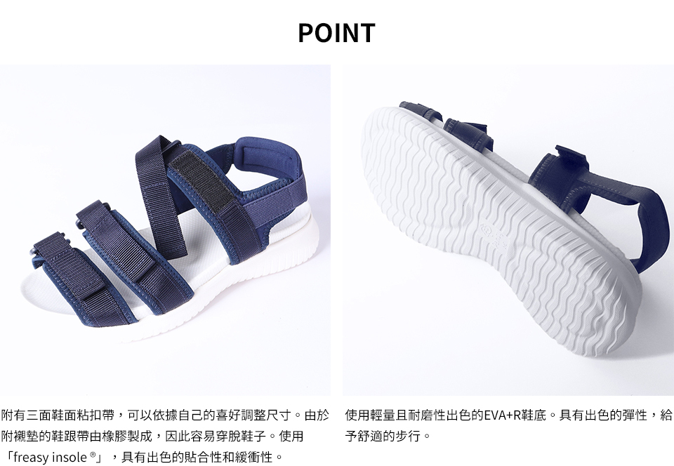 鞋面附有三面黏扣帶!可以根據自己的喜好調整貼合度。