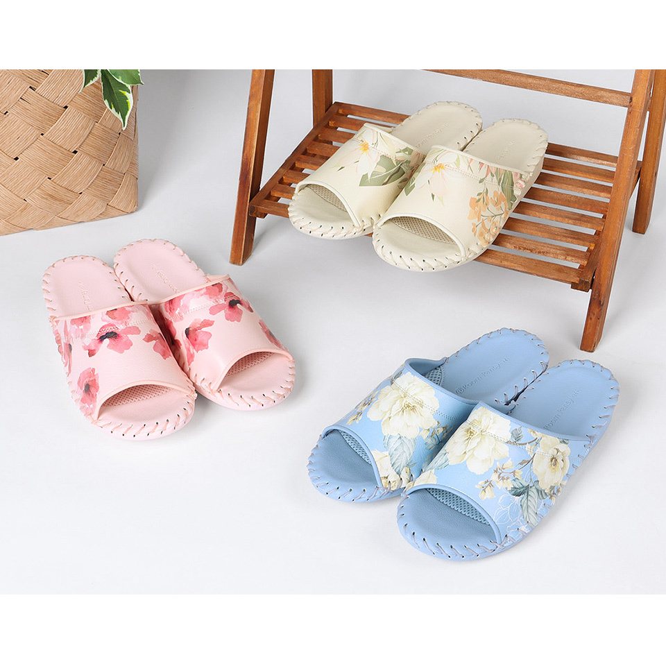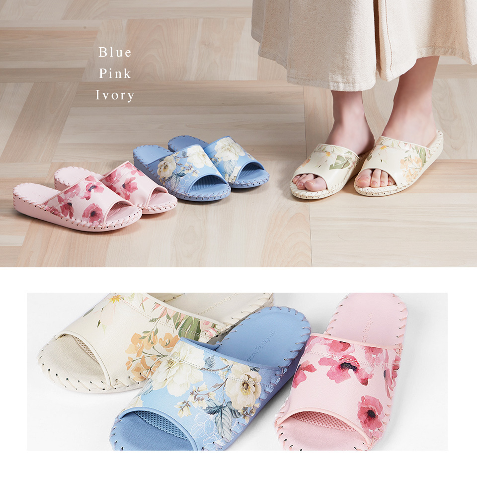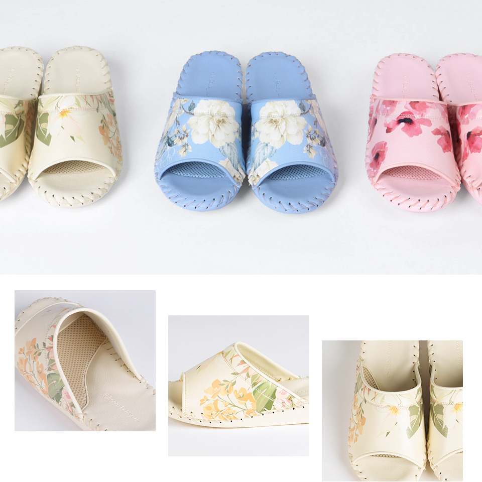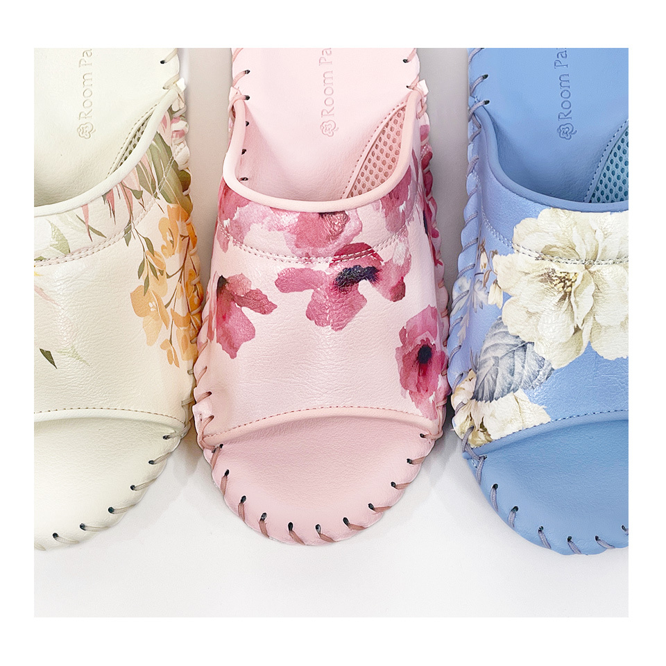 一種顏色不同花卉圖案的室內鞋。