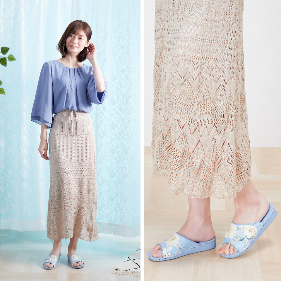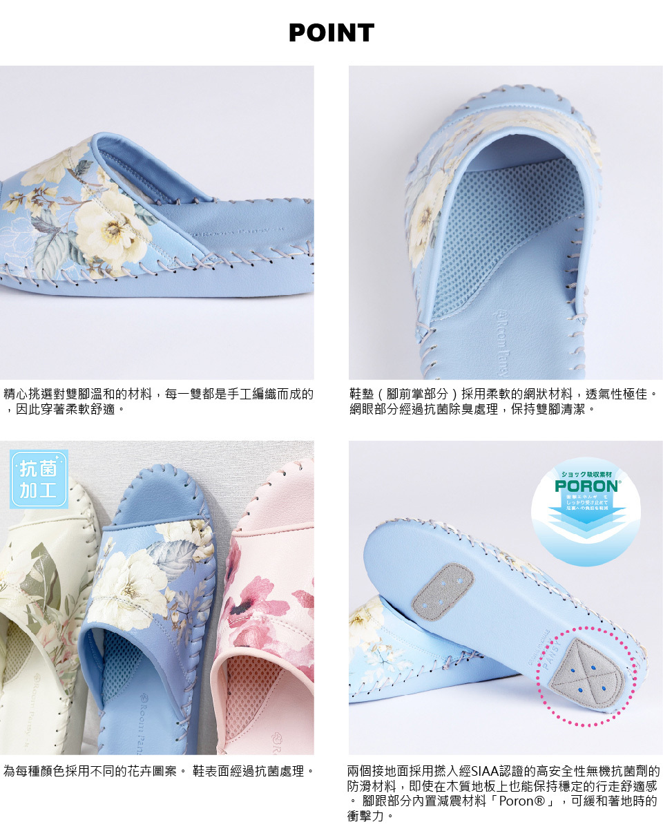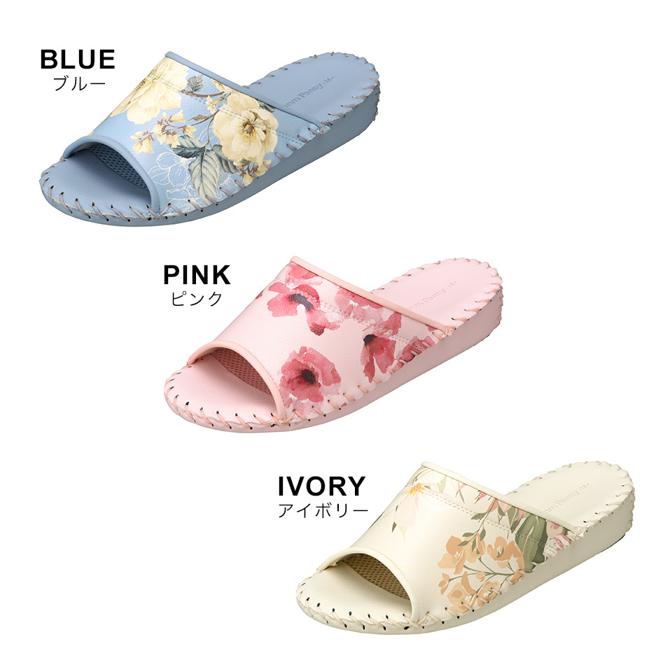 一種顏色不同花卉圖案的室內鞋。