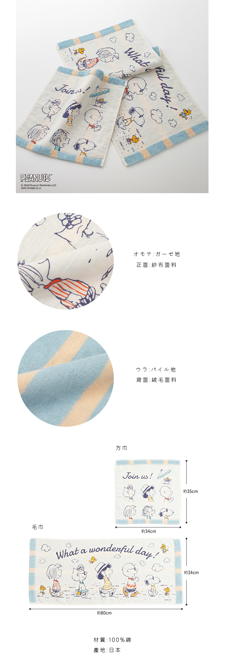 史努比集合散步麻紗方巾毛巾