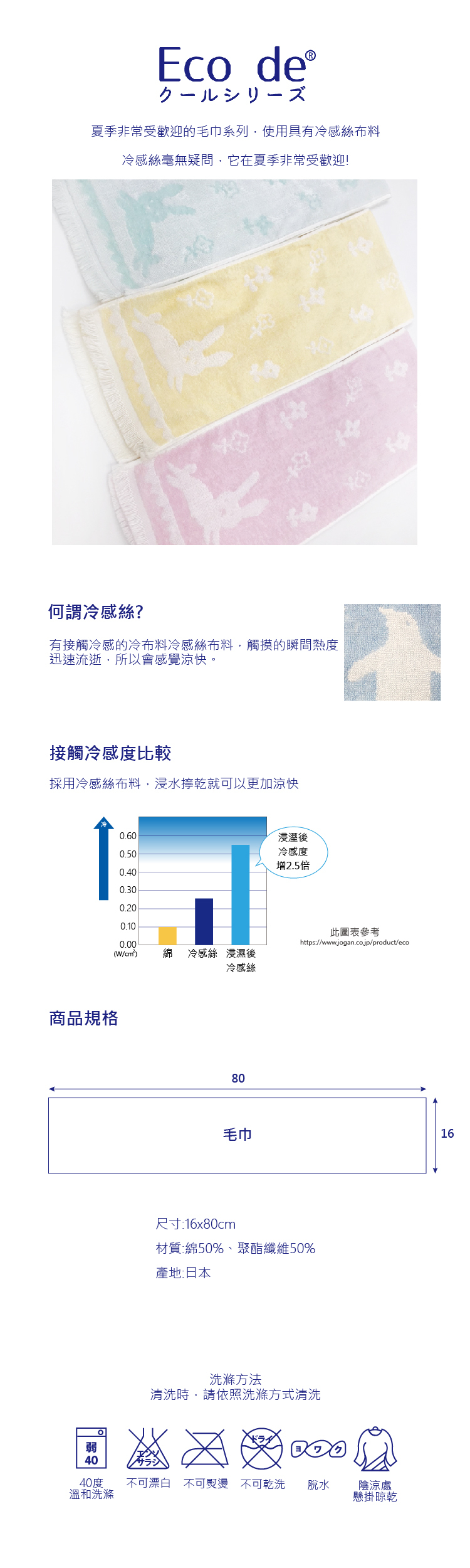 採用冷感絲布料,浸水擰乾就可以很涼快唷。(毛巾沒有任何冷卻添加物)