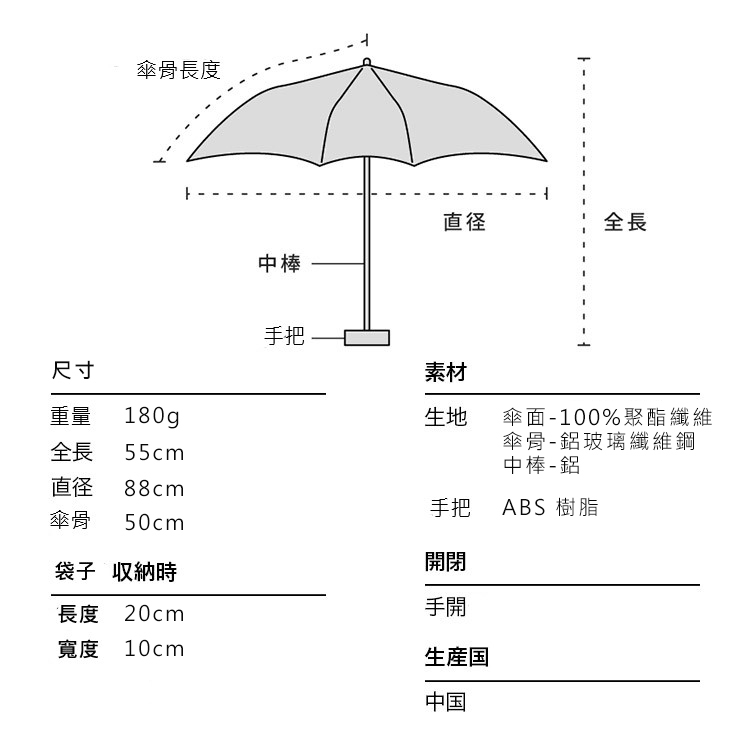 主要用作雨傘,但具有紫外線預防作用。 但紫外線遮罩率因顏色色調而異,因此請參考以下數位作為指南。